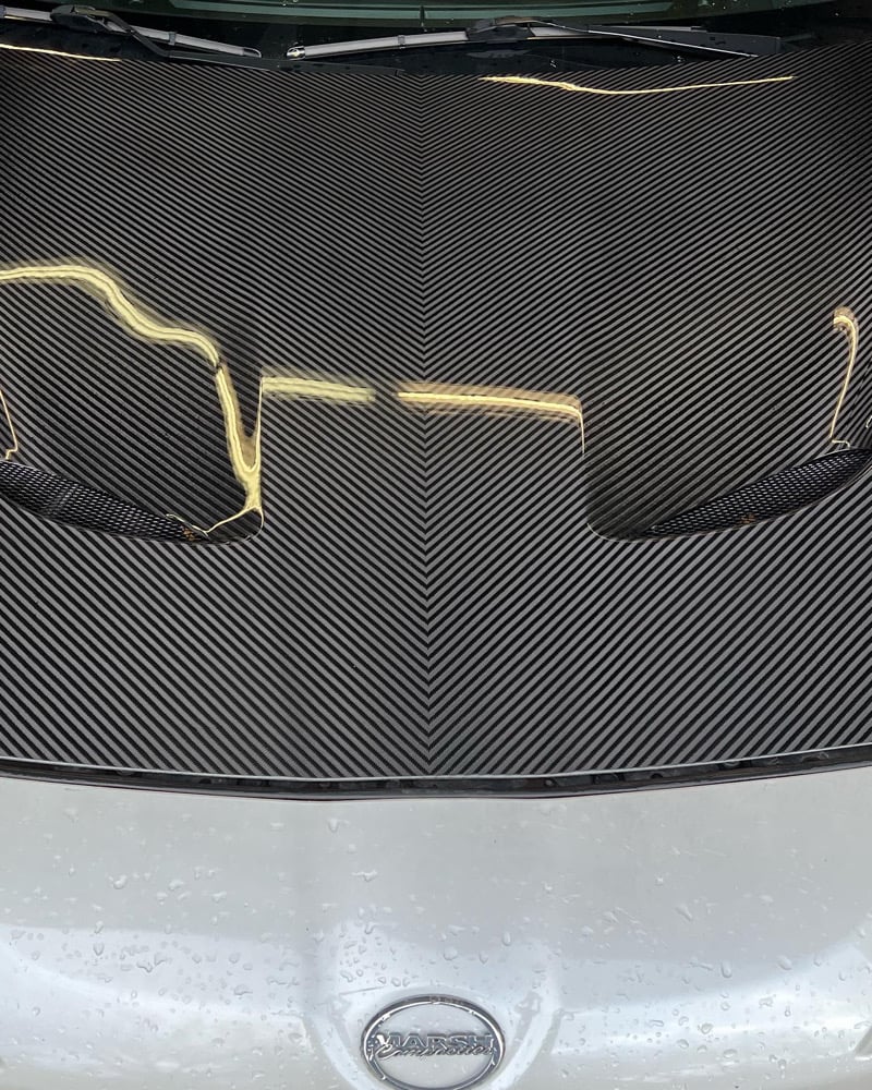Thanks to the demand and planning of several long time 86 platform enthusiasts, we've brought back this impossible to find design with a twist by removing the useless NACA duct in the center. Made from 100% high strength aerospace grade carbon fiber and UV stable epoxy, then top coated with a quality automotive clear coat instead of thick brittle gel coat, this is the highest quality this hood style has ever seen. Manufactured using a "dry" carbon process we infuse the optimum amount of resin for the perfect fabric to resin ratio for both strength and weight. That process combined with our new laser cut titanium strikers (now standard on all hoods) allows this hood to weigh only 8lbs. 4oz. The vents are filled with a black powder coated aluminum hexagon mesh to prevent leaves/debris from falling in, and are held in place with stainless steel tabs to allow them to be removed if desired.